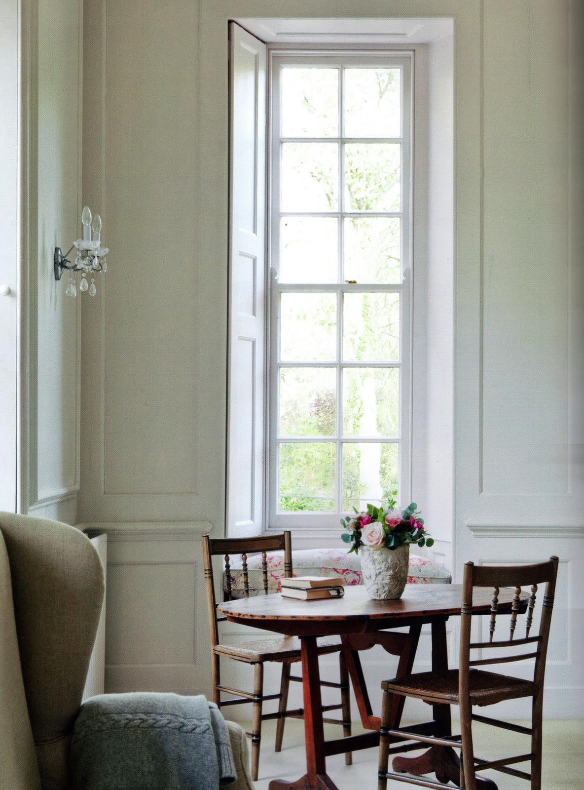 Above: From Farrow and Ball's new book, "Living With Colour". The vertical shape of this window accentuates the height of the room. The depth allows space for a small window seat.