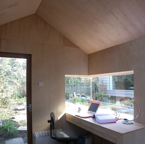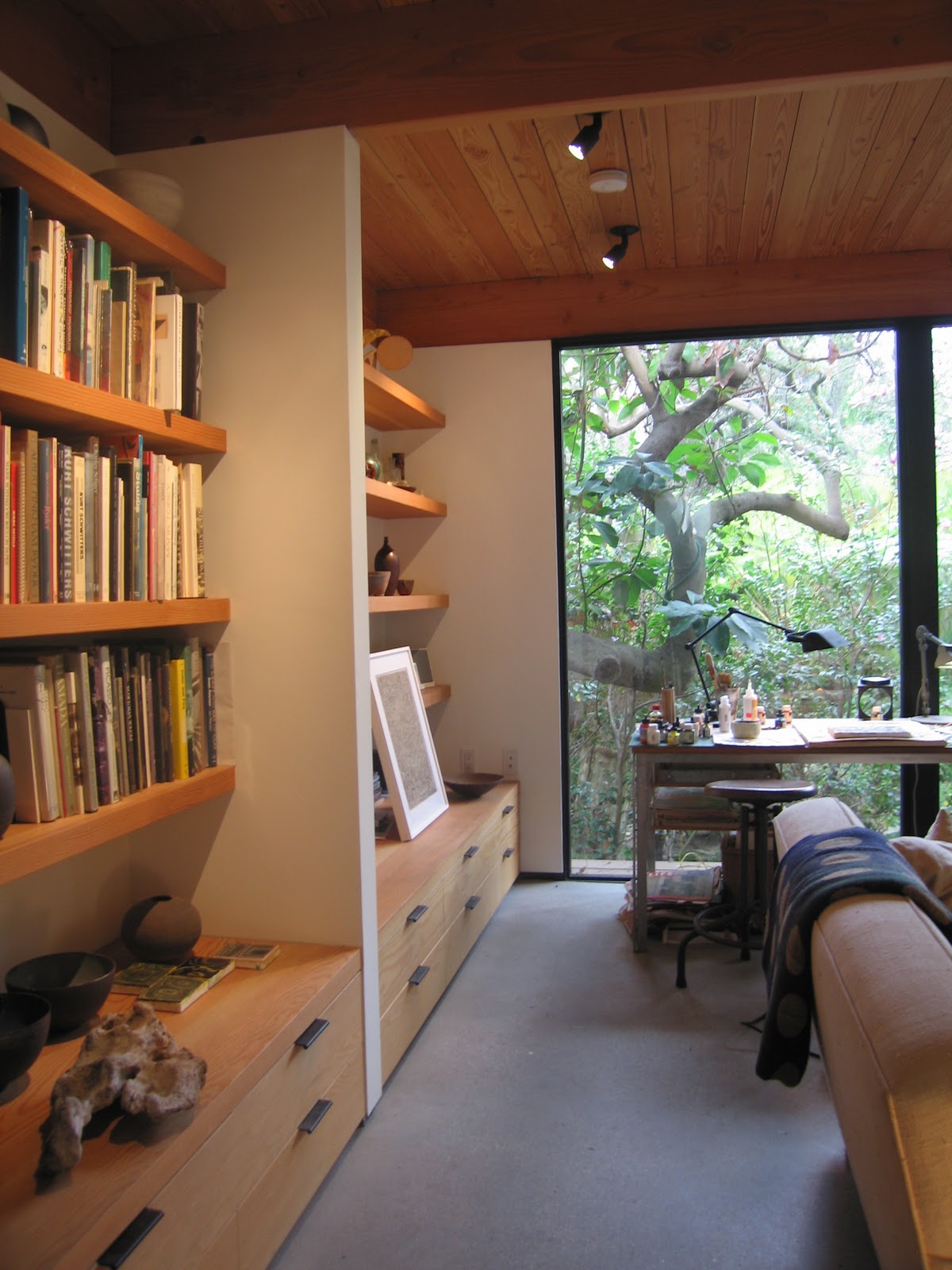 Above: The view from inside the studio I designed behind our house.