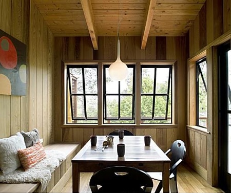 Above: A house by Gustave Carlson in Inverness. In this modern cabin the windows open in an interesting way.