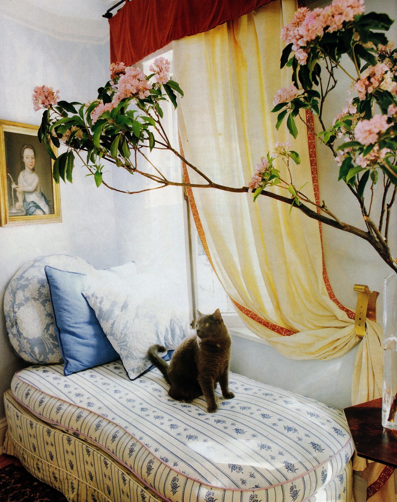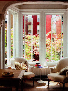 Above: From an old issue of Elle Decor, a corner of an apartment I found much inspiration in. This window seat isn't built in, but it would be a lovely place from which to look out the window. It's the home of Sciascia Gambaccini, or at least it was when this came out about 10 years ago.