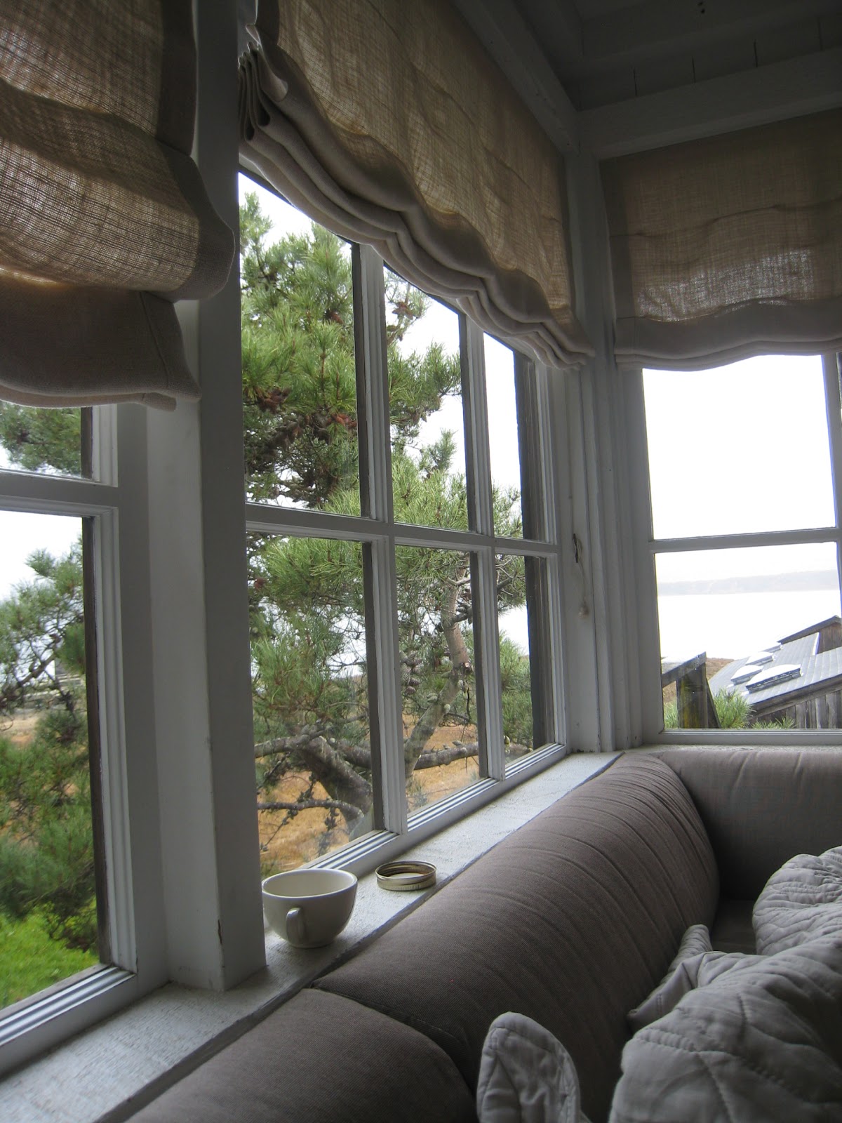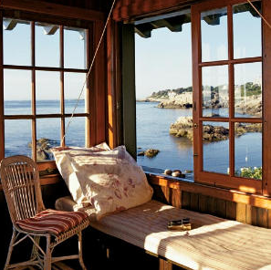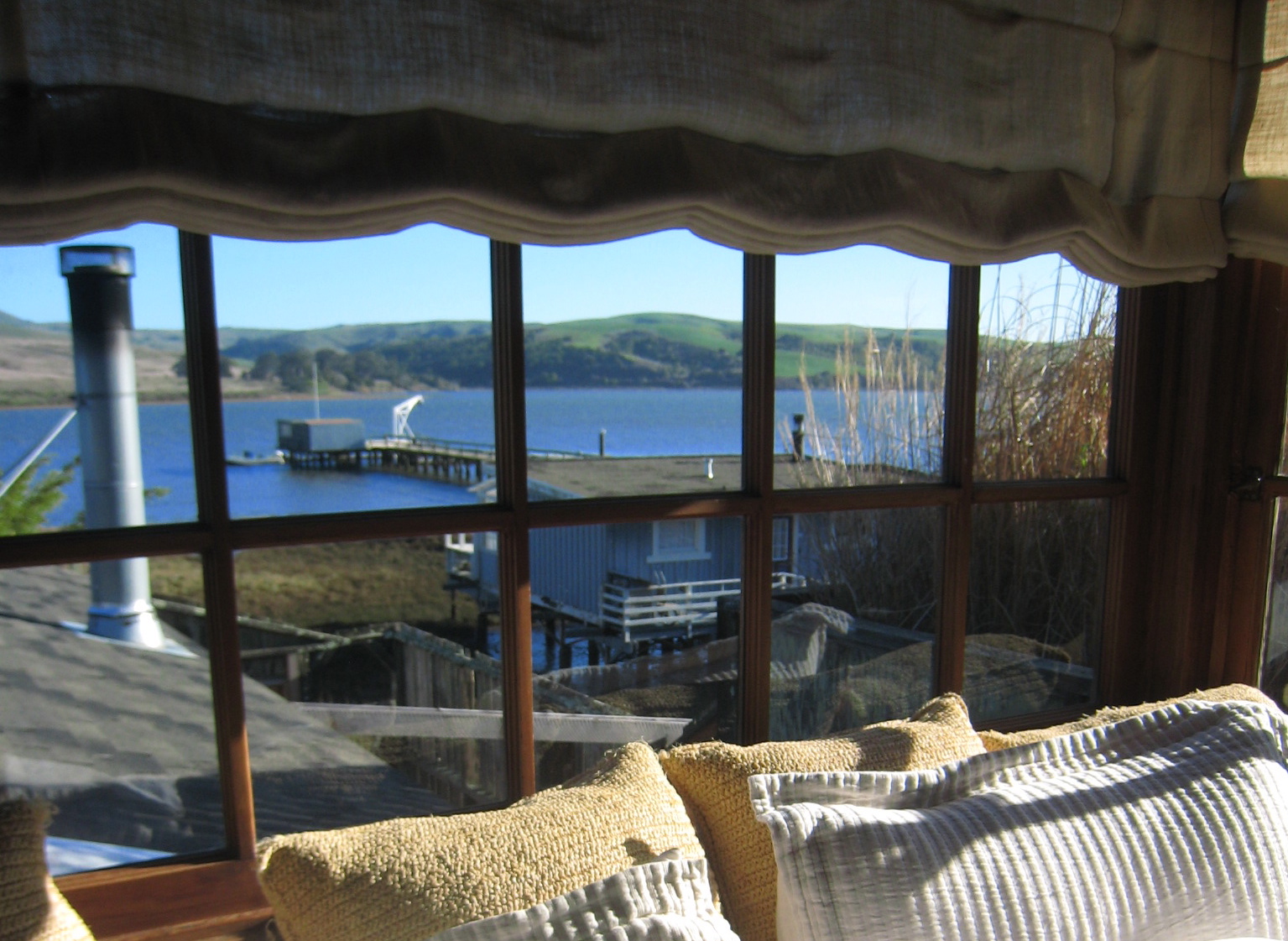 Above: This window seat is at Manka's, Inverness, California. Not only is it comfortable, but it has a good view of Tomales Bay.