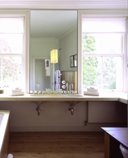 Above: Natural light streams in on either side of the mirror in this hotel in the Cotswolds.