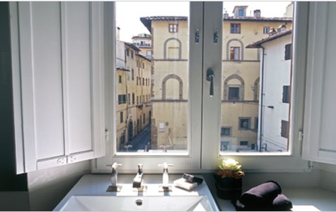 Above: A fantastic view from the bathroom sink in Florence at the Floroom Hotel, in the Oltrarno neighborhood.