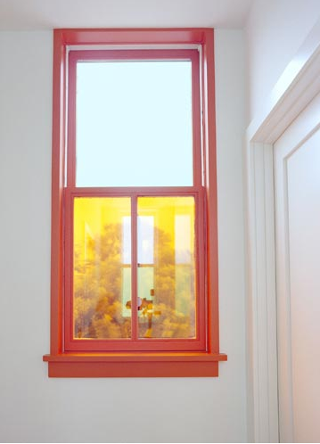 Above: Roy McMakin uses windows in a very artistic way. Here he's taken a shape he works with frequently, with the bisected pane, and colors the glass. The colored view looks like an old sepia photograph.