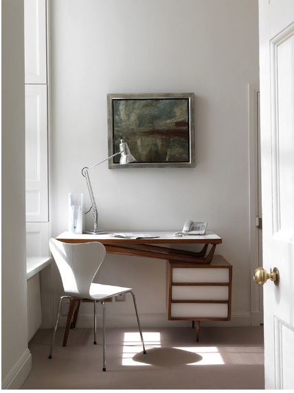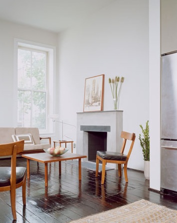 Above: This window has the same bisected shape as in the Roy McMakin window in the previous photo. It's from a brownstone in East Harlem renovated by the firm Delson or Sherman. The light looks so pretty reflecting off the glossy painted floor.