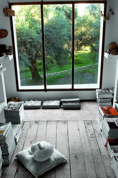 Above: The cushion's a little thin, but the setting would distract you from dwelling on it. via From The Right Bank.