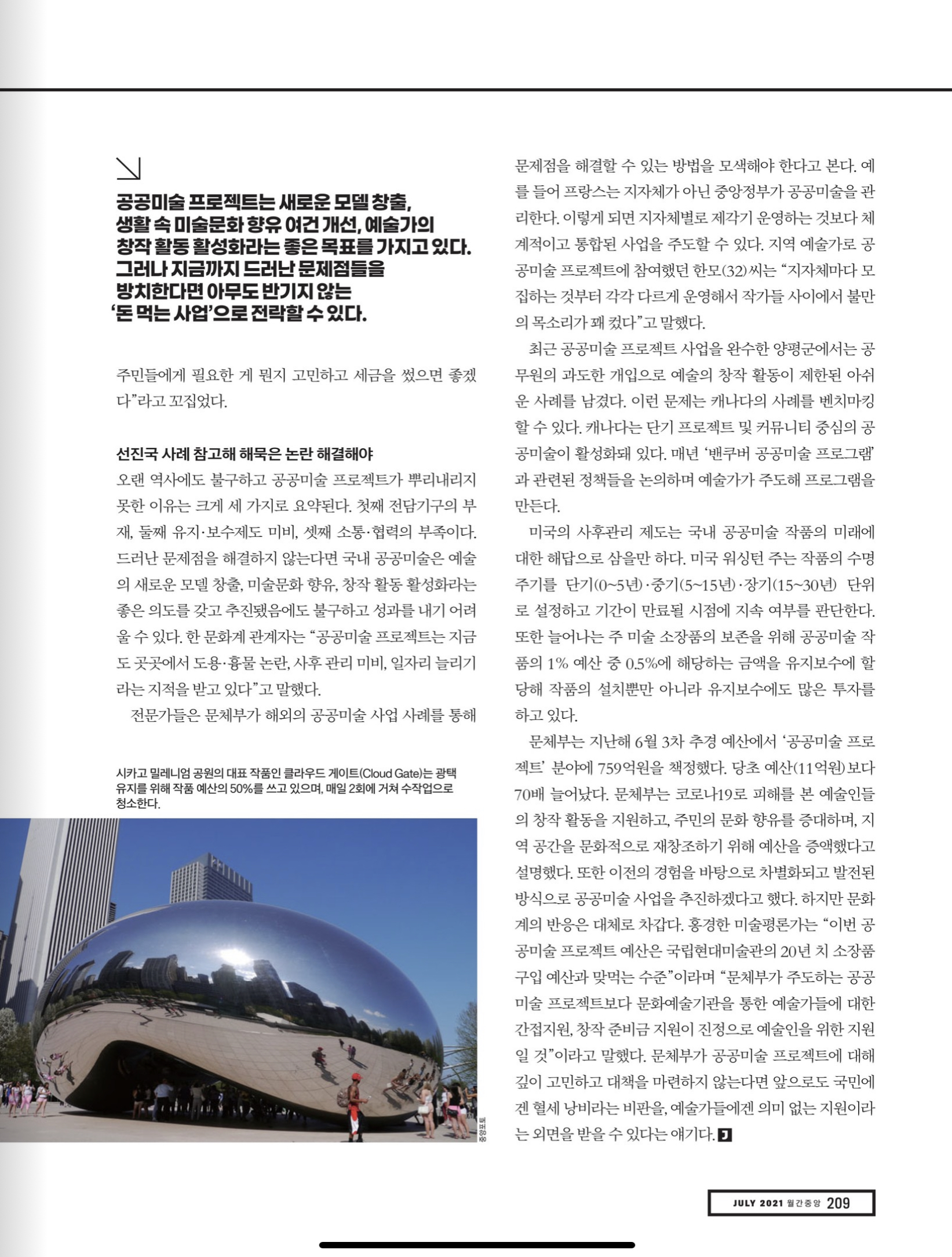 공공미술에 대해 인터뷰한 내용이 월간 중앙에 실렸습니다.